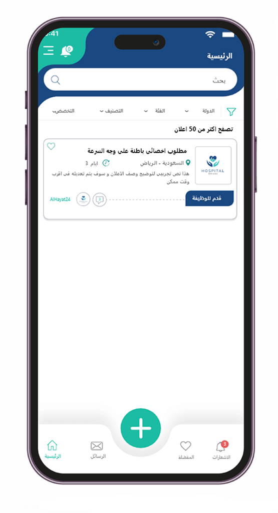 توفير تطبيق الكتروني متكامل ومرن يضم قاعدة بيانات واسعة ومتنوعة من الوظائف الطبية